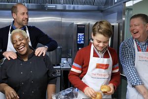 Prince William has taken Prince George to a homelessness project for the first time, with father and son helping to prepare its annual Christmas lunch.