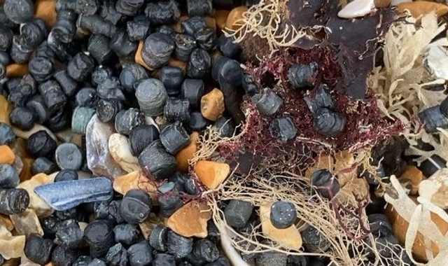 It is thought the dark grey or black "bio-beads" may have come from local water treatment plants.