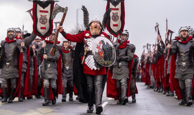 The much-loved festival sees people dressed as Vikings march through the streets of the town to recreate its ancient past, in a tradition dating back to the 19th century.